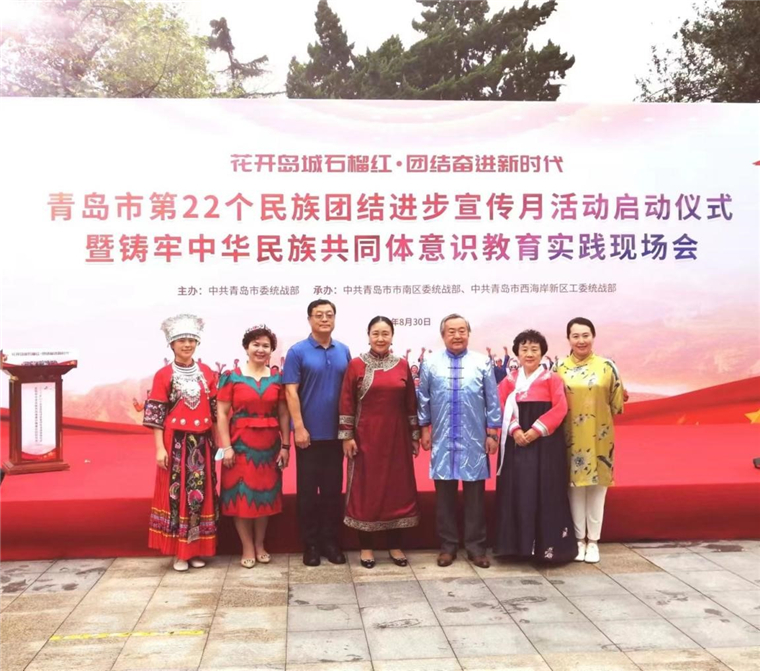 为全面贯彻落实习近平总书记关于加强和改进民族工作的重要思想和中央民族工作会议精神,持续推动铸牢中华民族共同体意识宣传教育,日前,青岛市第22个民族团结进步宣传月活动启动仪式暨铸牢中华民族共同体意识教育实践现场会在市南区“红石榴”主题公园举行。青岛市各民族代表40多人大会,市委统战部分管日常工作的副部长杨长军出席并讲话。我校马克思主义学院院长、青岛市民族团结进步协会会长朝克吉勒图教授,国际商学院党总支副书记、院长助理刘奕蔓出席了大会。