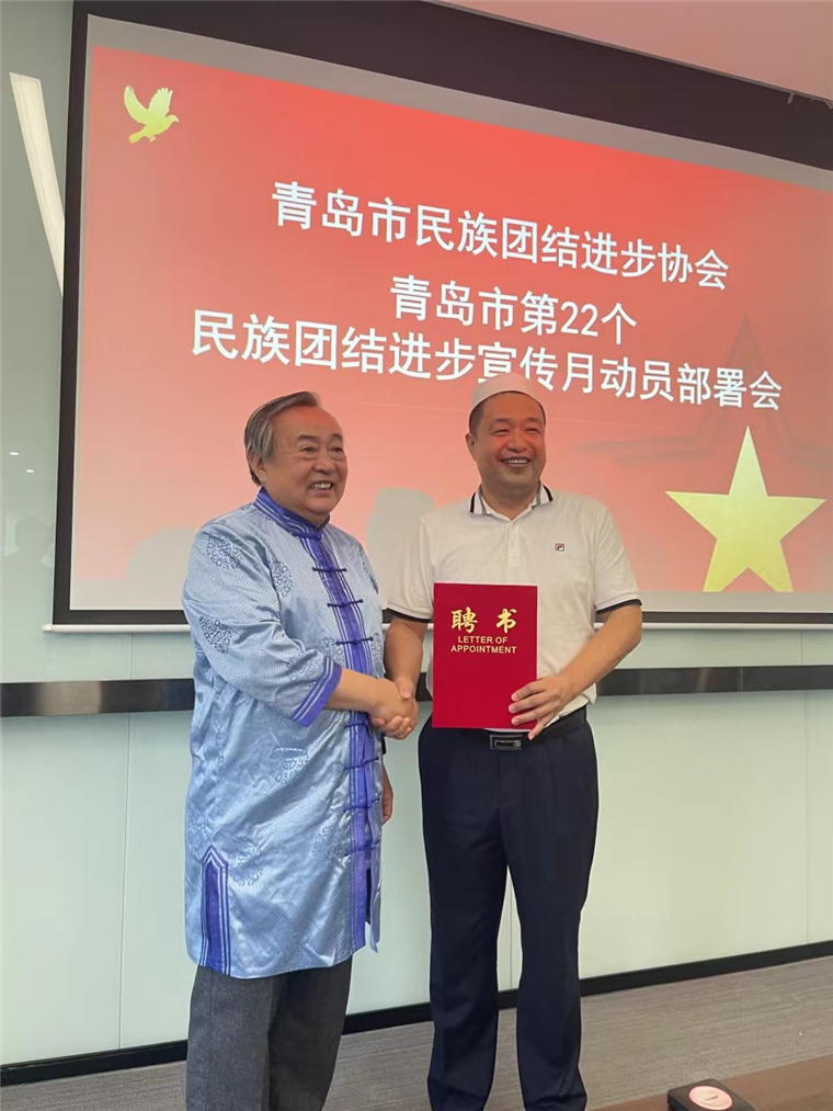 青岛市民族团结进步协会各位领导成员还考察了中科防务公司,并举行了“第22个民族团结进步宣传月活动部署会”。协会成立了“铸牢中华民族共同体意识促进组”刘奕蔓任副组长、臧运霞任成员。朝克吉勒图会长为促进组组长石海君副会长颁发了聘书,统战部刘玉国处长为副组长、成员颁发了聘书。