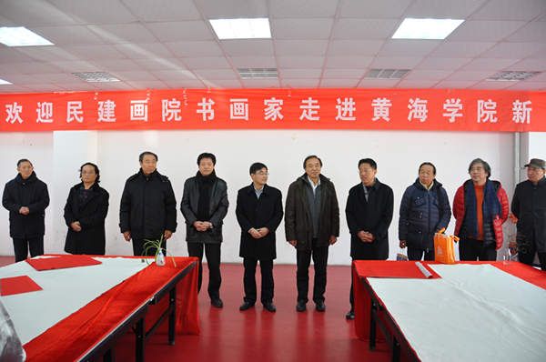 民建书画家们与在场师生合影留念