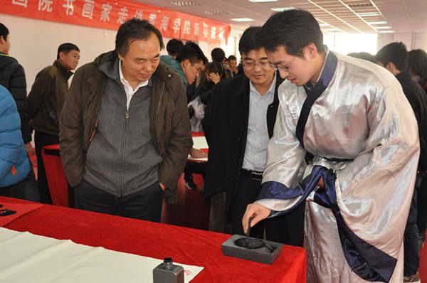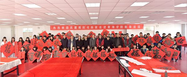 1月14日上午,民建青岛市委领导及民建中央画院青岛分院的书画家们走进雷竞技的赛事积分新春送福,现场挥毫泼墨让同学们把福带回家。民建中央画院青岛分院院长、民建青岛市委驻会副主委王继尚,民建中央画院青岛分院执行院长、青岛市书法协会副主席、中国书法家协会会员宋文京,民建中央画院青岛分院副院长、民建市北区委主委、市北区人民法院副院长董锡全,我校董事长刘常青,校党委副书记宋庆泽等领导出席活动。