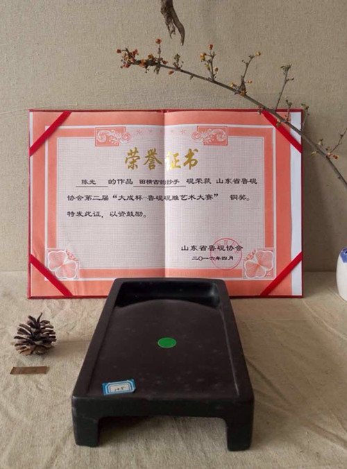 4月17日,山东省鲁砚协会主办的第二届“大成杯——鲁砚砚雕艺术大赛”在济南落下帷幕,这次大赛旨在推动山东省鲁砚行业砚雕技艺的发展,培养砚雕工艺技术新人才。来自鲁砚各产地的红丝砚、尼山砚、金星砚、田横砚、燕子石砚、浮来山砚等十几个品种二百余方砚台参加了评展。由我校博物馆选送的三件作品在角逐中均获得奖项,其中尚智工坊成员陈光同学两件砚雕作品分别获得铜奖一项、优秀作品一项,禄波同学获得优秀作品一项;同时这两名同学被山东省鲁砚协会正式吸纳为会员,已具备砚雕师所持有的资格和条件。