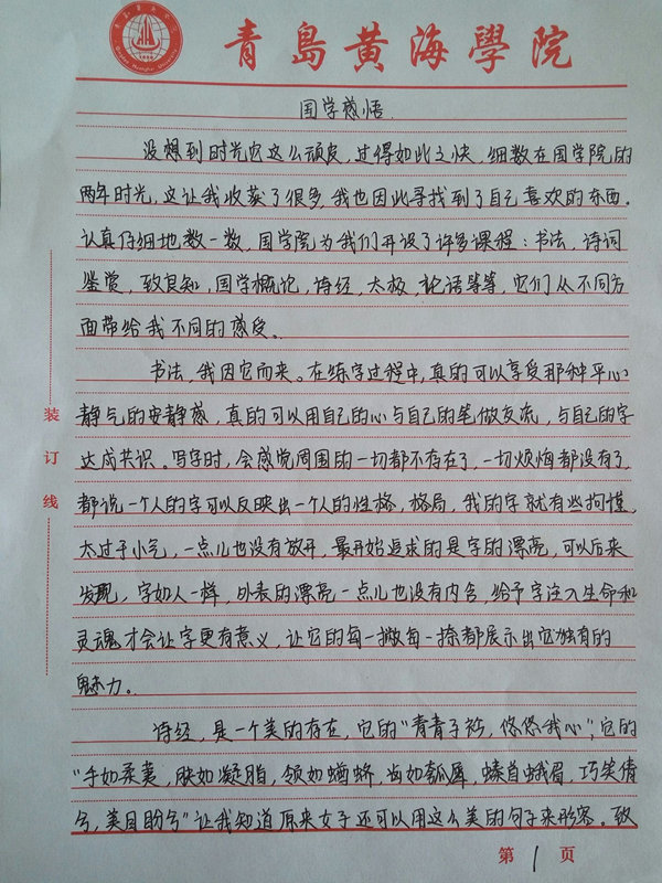 附学生所写心得: