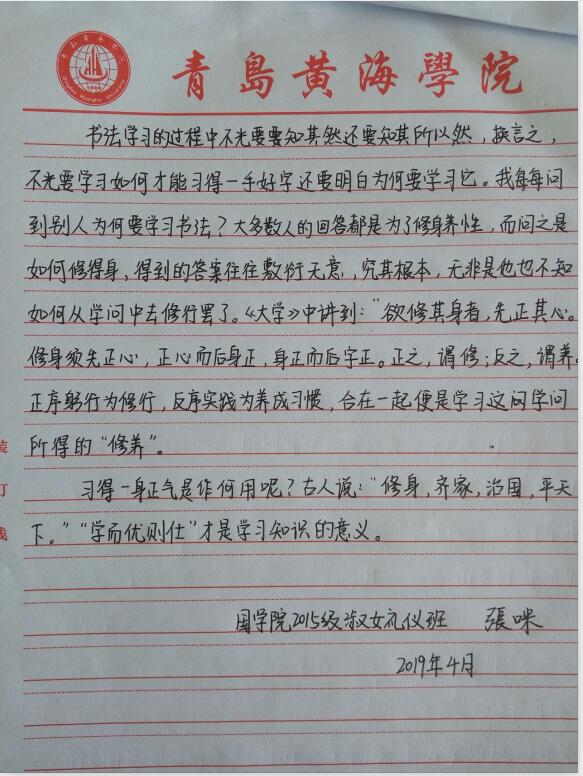 于善懃院长高度赞许了同学们在学习国学过程中的心得体会和变化,称每一位同学都是“小书法家,小思想家”。并针对“六艺”之间的关系给同学们进行了生动的讲解,使每一位同学都受益匪浅。最后,于院长送了同学们四句诗以做勉励:“书有二王圣,字无百日功。温文淑女范,敦厚君子风。”