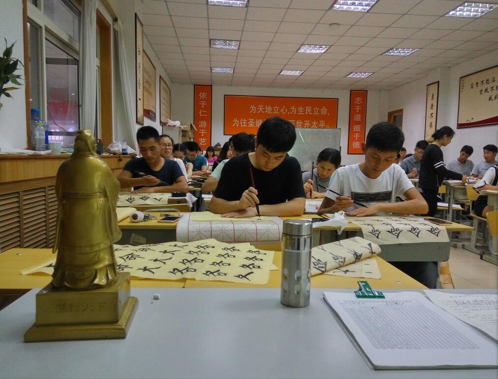 随后,参会的每一位同学都在会上进行了积极的发言,同学们纷纷表示在两年半的国学学习中,尤其是《致良知》和书法课,更加有效地陶冶了他们的情操,拓展了心胸与格局,培养了他们学习的自主性,养成了周六仍能认真学习的好习惯。他们说,在未接触国学课之前,人生前行的目标一直很模糊,而现在的他们前行的目标日渐清晰明确,而且信心满满;在谈及书法学习时,一致表示会坚持终身写下去,做一个骄傲的中国人,练出一手好字,让自己终身受益无穷。