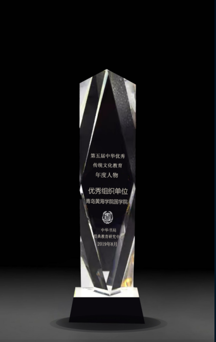 我校国学院荣获第五届中华优秀传统文化教育年度人物评选 “优秀组织单位奖” 奖杯