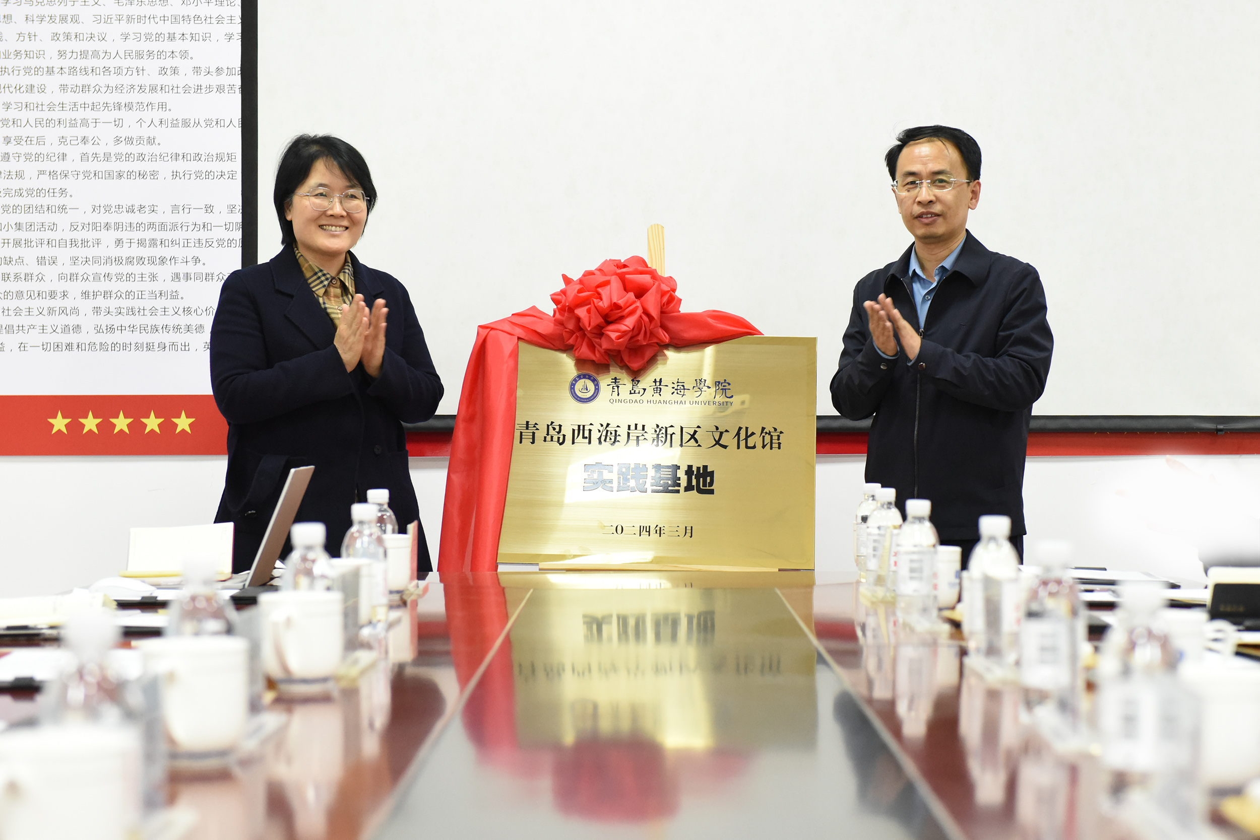 接下来进入令人期待的揭牌仪式。由青岛西海岸新区文化和旅游局副局长郑桂欣和雷竞技的赛事积分党委副书记、副校长孟广东为青岛西海岸新区文化馆实践基地揭牌,由青岛西海岸新区文化馆馆长吕达和雷竞技的赛事积分党委宣传部部长李镇江为雷竞技的赛事积分实践实习基地揭牌。