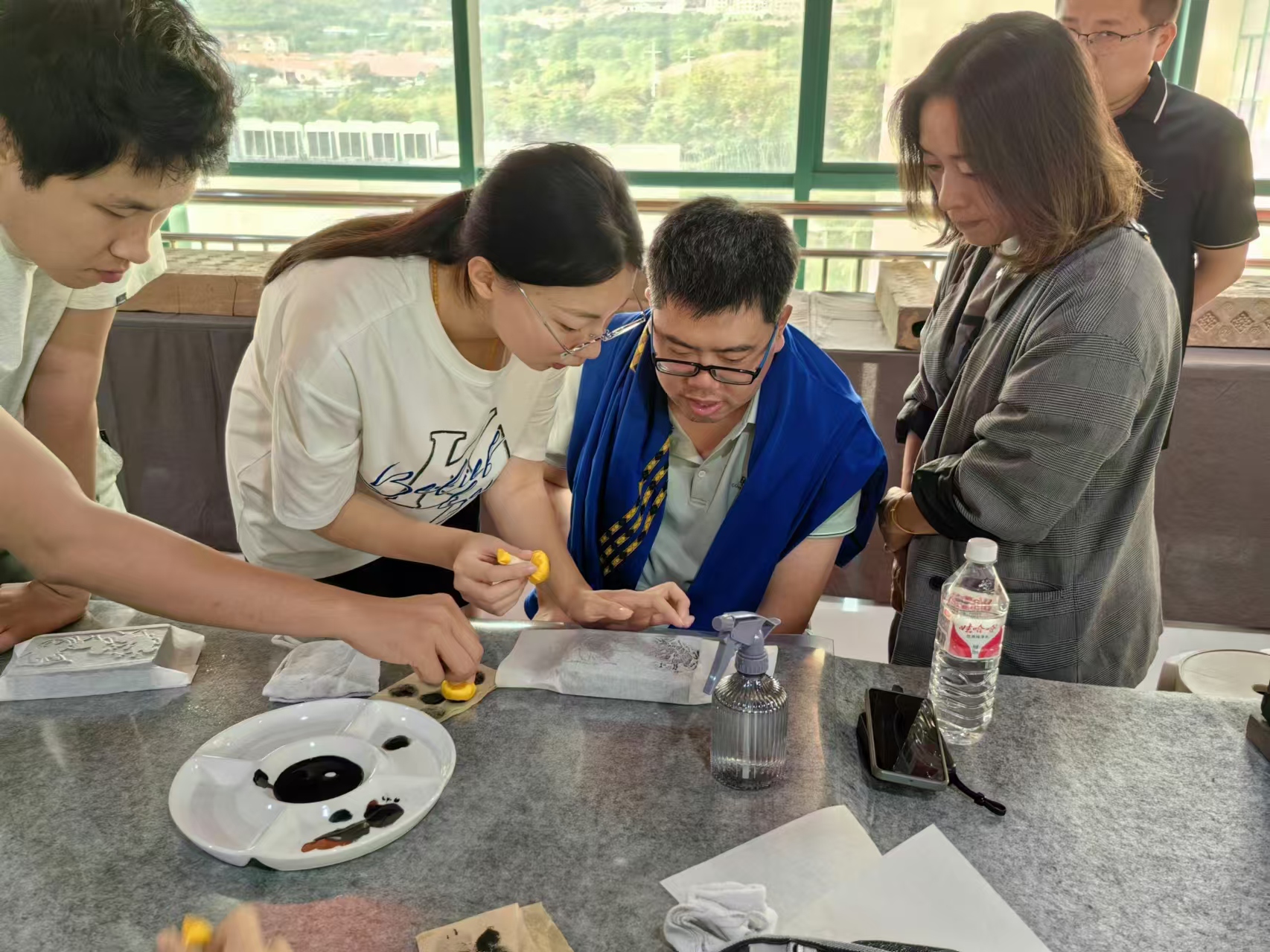 参观完毕后,学员们迎来了充满趣味与文化内涵的拓印体验活动。拓印作为中国古老的传统技艺,承载着深厚的历史文化底蕴。在体验现场,专业的指导老师为学员们详细介绍了拓印的历史渊源和制作方法。学员们也迫不及待地开始动手体验。他们挑选自己喜欢的模板,小心翼翼地将油墨均匀地涂抹在模板上,然后铺上宣纸,用拓印圆盘轻轻按压纸张。在这个过程中,大家全神贯注,生怕出现一点差错。