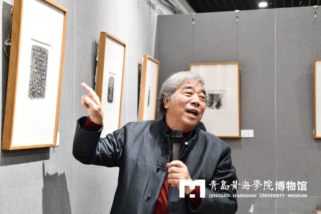 在观展环节,由主策展人巩玉兆老师为大家进行专业且细致的讲解。此次展览内容丰富多样,涵盖了方介堪、陈介祺等收藏家的旧藏、借展金文拓片、我校馆藏金文拓片以及师生们精心创作的书法作品等多个板块。