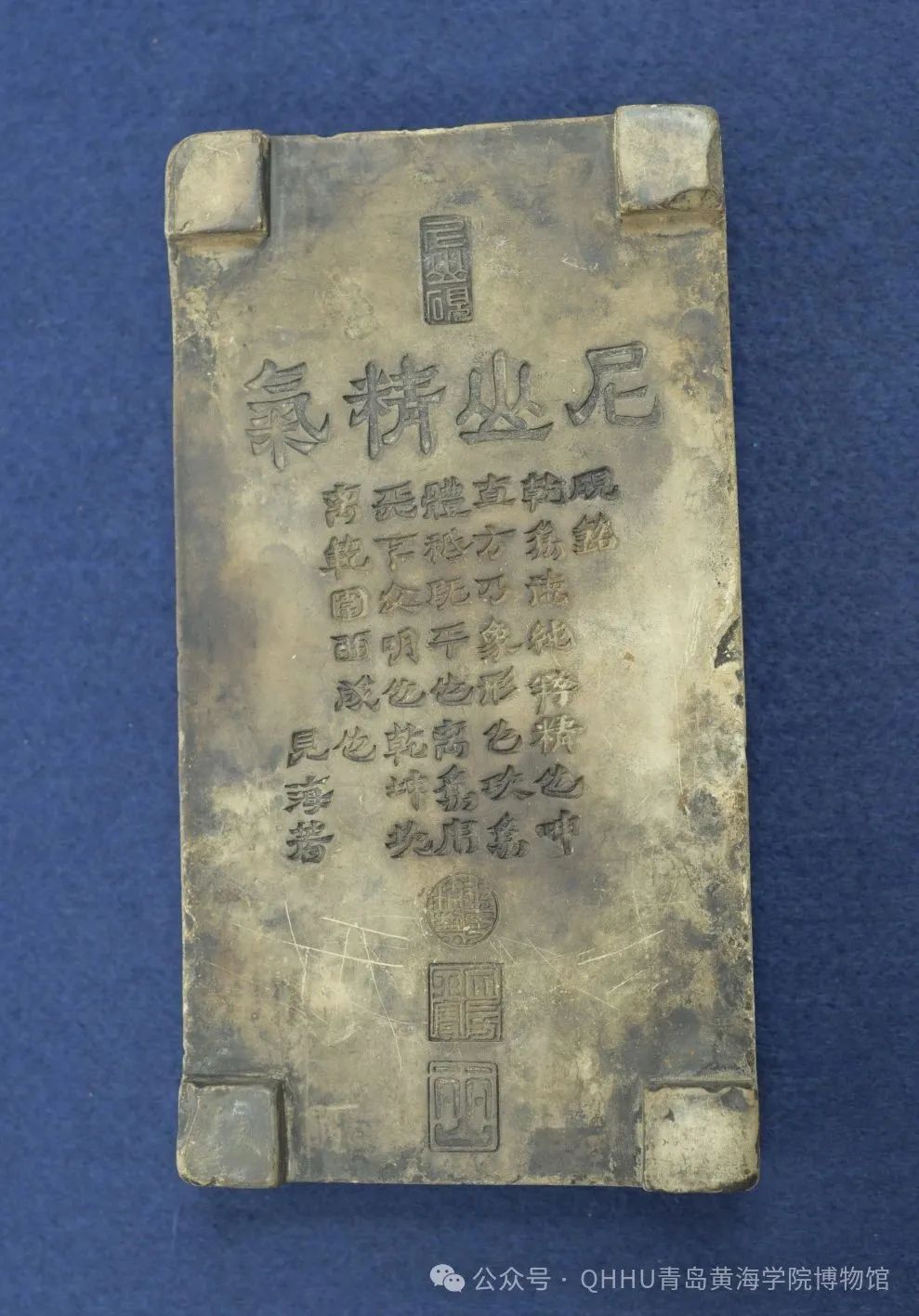 尼山精气砚,作为澄泥砚中的独特品类,产地位于山东曲阜、泗水、鱼台一带,始于明代。其制式多为长方形,砚池设计别具一格,池上雕刻着文字及饰物,增添了艺术美感。砚底四方足,多模印 “大明旹(有学者认为是‘时’字)”“尼山精气” 等字样 ,彰显其独特身份。而此次展览中的 “见海” 款尼山精气砚,更是凭借其背后的故事与独特的砚铭,成为众人瞩目的焦点。