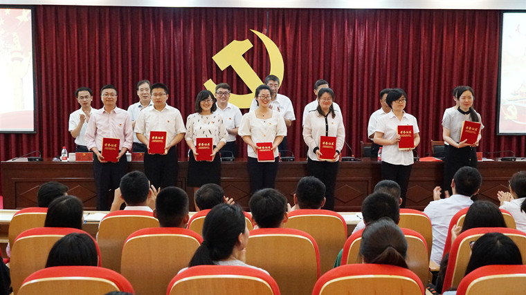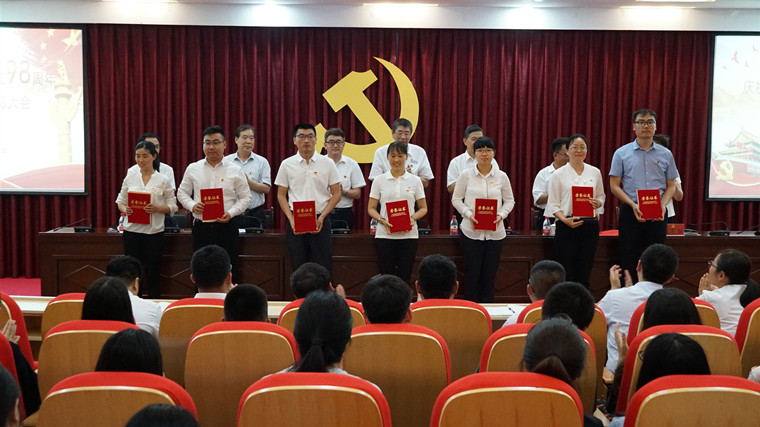 6月28日下午,雷竞技的赛事积分庆祝中国共产党成立98周年暨“七一”表彰大会在知新楼西报告厅隆重举行。全体党委委员以及评选出的优秀共产党员、优秀党务工作者及党员代表等200余人参加大会。大会由校长、校党委副书记王渊明主持。