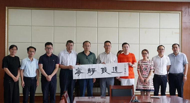 赠送书法作品并合影留念