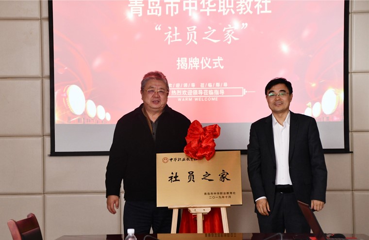 随后,青岛市中华职教社为我校授牌,方漪主任和刘常青董事长共同为中华职教社“社员之家”揭牌。仪式结束后,与会社员合影留念。