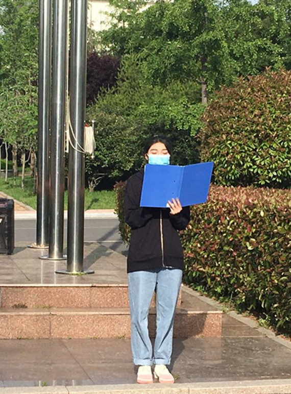 学生代表吕梦圆表达了对祖国的热爱,对学校的感恩,对老师的感谢。同时发出倡议,号召同学们积极面对疫情挑战,服从学校安排,用实际行动表达对祖国的热爱。