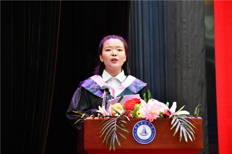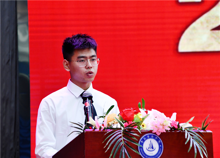 无论将来你在什么样的岗位,都不要放弃你曾经的梦想,时时刻刻不要忘记继续学习。希望大家继续发扬我校“知行合一”的校训,要“踏踏实实做事,老老实实做人”。无论你是谁,无论什么时候,无论面临什么样的境况,你不妨想想你的母校,你不妨回来看看,想想你的大学生活,想想你曾经的梦想。母校的大门会永远向你敞开。梦想的舞台就在前面,同学们,祝大家都能梦想成真!