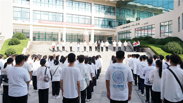 在校学生会学术研究部部长冯思嘉同学带领下,全场同学庄严宣誓:向雷锋同志学习!热爱祖国、关心集体。勇于奉献、助人为乐。勤俭节约、艰苦朴素。文明礼貌、团结守纪。从我做起,从现在做起,从身边每件小事做起,以身作则,将践行雷锋精神成为一种习惯,以实际行动为新时代的雷锋精神注入新的活力!