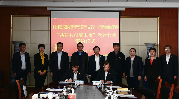 为进一步加强学校党建工作,积极探索党建工作新模式。1月18日上午在学校行政楼201会议室,我校与中国建设银行黄岛支行举行“共建共创赢未来”党建共建签约仪式。学校董事长刘常青,副校长梁忠环,纪委书记、校长助理马永来,学校党委委员、校长助理、财务部部长刘常春;中国建设银行青岛市分行党委委员、副行长徐海,机构业务部副总经理王力,党委组织部副部长蒲蕻;中国建设银行青岛黄岛支行党委书记、行长程军,副行长崔桂军,业务部主任滕飞等领导参加签约仪式,仪式由学校机关第三直属党支部书记、财务部副部长陈传照主持。