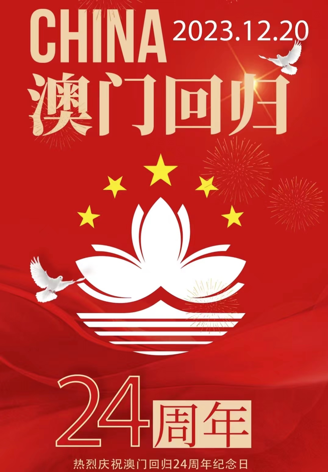今天,我们迎来了澳门回归 24 周年的喜庆日子!在这个特别的日子里,让我们一起为澳门送上最热烈的祝福,祝愿澳门这朵盛世莲花在祖国的怀抱中绽放出更加绚烂的光彩!
