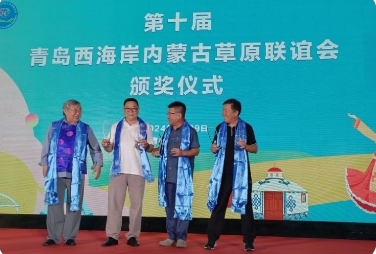 会上,西海岸新区内蒙古草原联谊会会长金杰,内蒙古通辽市驻山东省工作处处长莫日根,山东省内蒙古商会会长、青岛东彩包装有限公司董事长、青岛吾丁智能科技有限公司董事长韩振涛等嘉宾光临大会并发表热情洋溢的讲活。青岛市民族团结进步协会名誉会长、我校马克思主义学院名誉院长朝克吉勒图教授为西海岸内蒙古草原联谊会顾问们颁发了奖杯并致词。