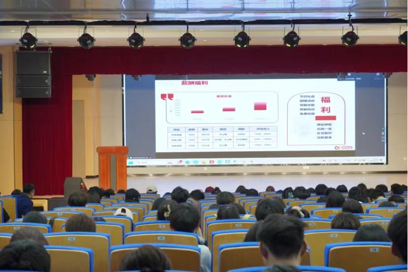 企业人事主管杨阳,分别从公司简介、生活环境、主要工作岗位、培训发展、薪资福利等几个方面进行了简单介绍,为各位同学提供了就业指导和帮助,并分析了行业的发展趋势和竞争格局,介绍公司的战略规划和发展方向。