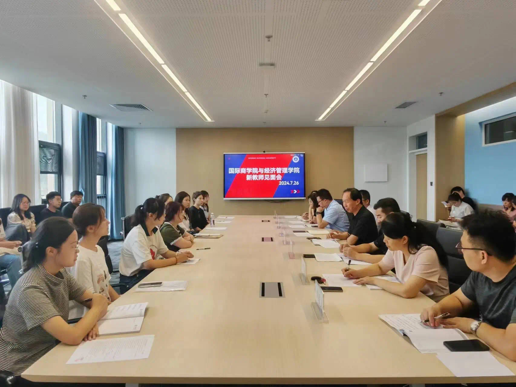 2024年7月26日,国际商学院与经济管理学院在知信楼511会议室召开新教师见面会。会议由国际商学院与经济管理学院常务副院长孙兆忠主持,国际商学院院长王志宪,经济与管理学院院长孙在福,国际商学院院长助理王佳璇、齐晓明、刘奕蔓,经济与管理学院院长助理李燕、刘政义,全体系主任及行政秘书、全体新教师参加此次会议。