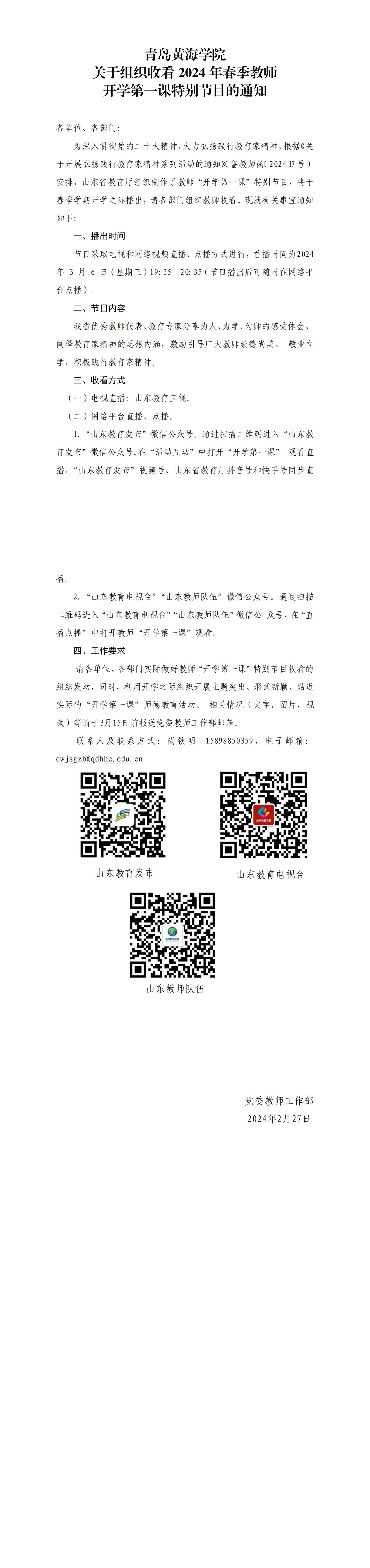 关于组织收看 2024 年春季教师开学第一课特别节目的通知