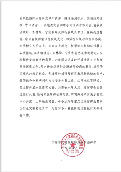2024年7月29日晚上19点30分,通过全体机关党员干部、武警官兵、消防战士、地方救援队、青年志愿者和市民的不懈努力,成功构筑一条宽1.5米、高1.1米、长2500米的临时堤坝。
