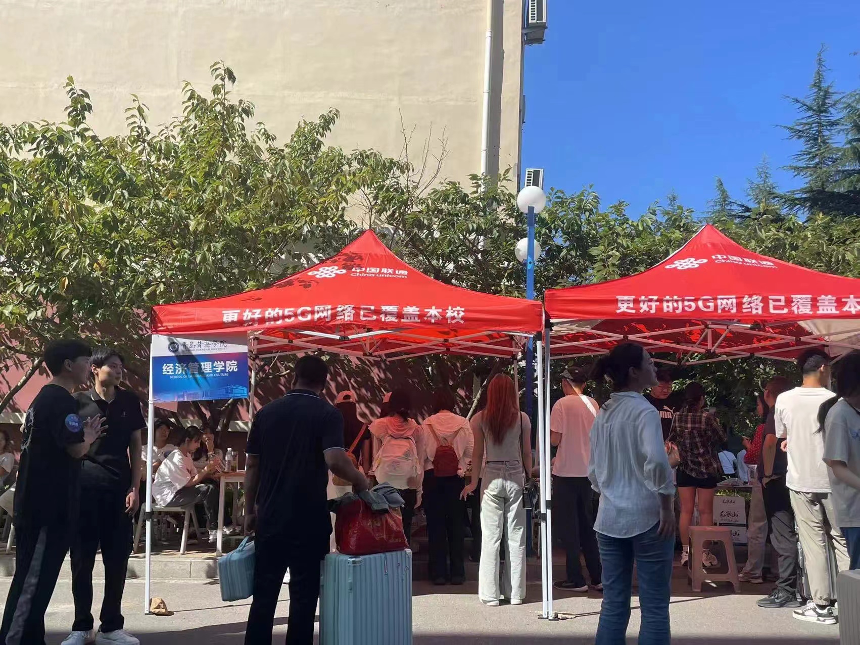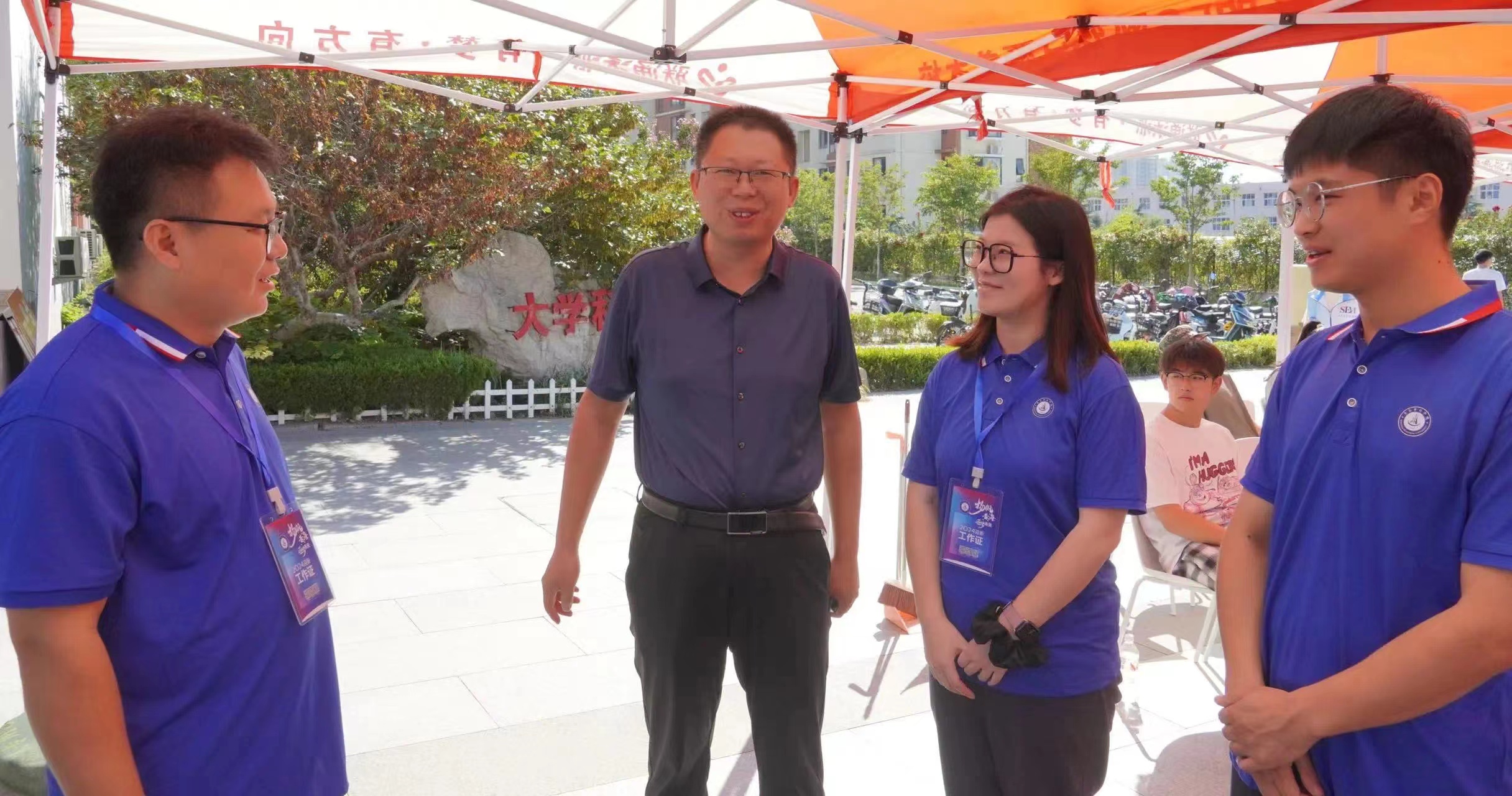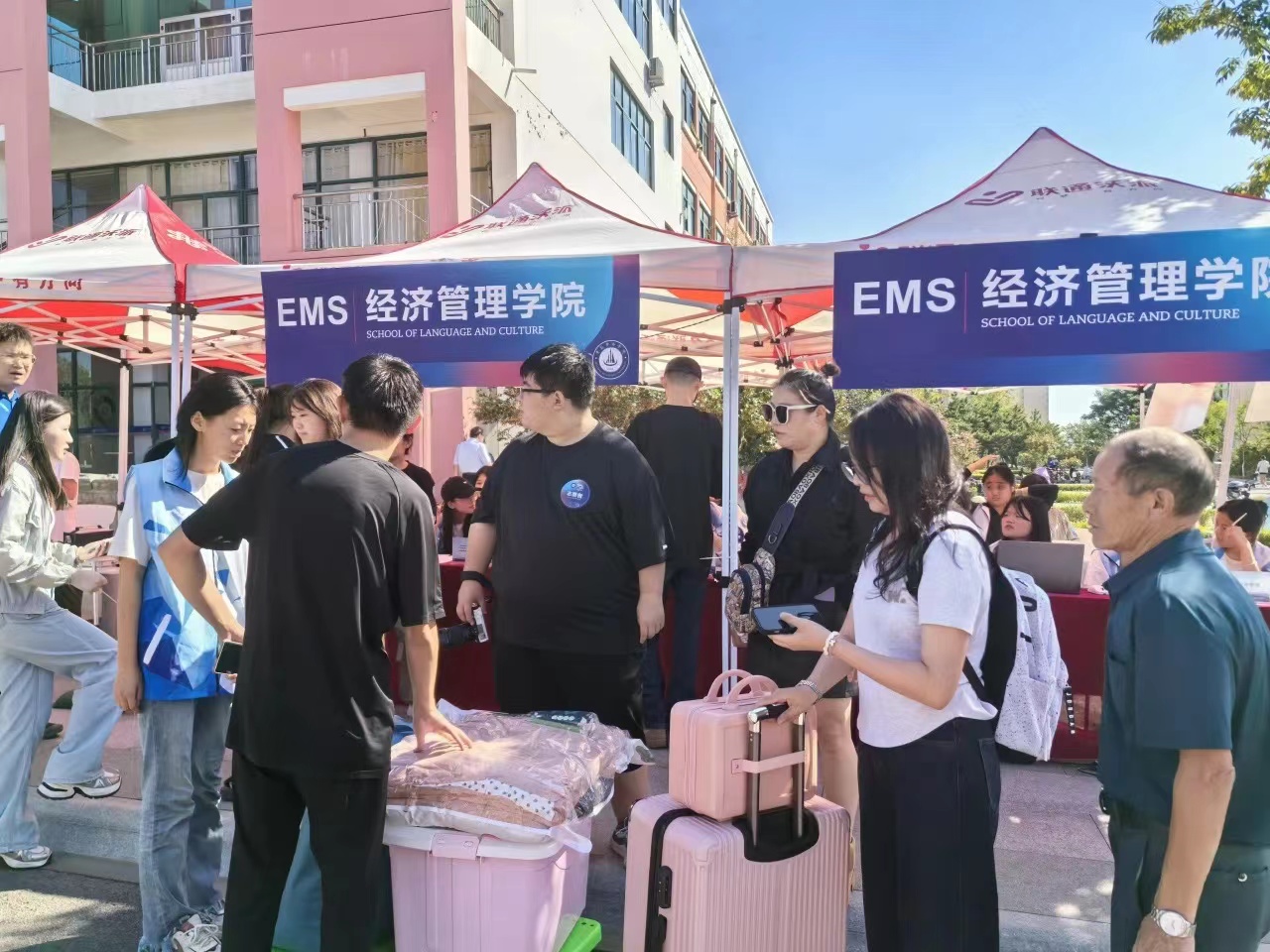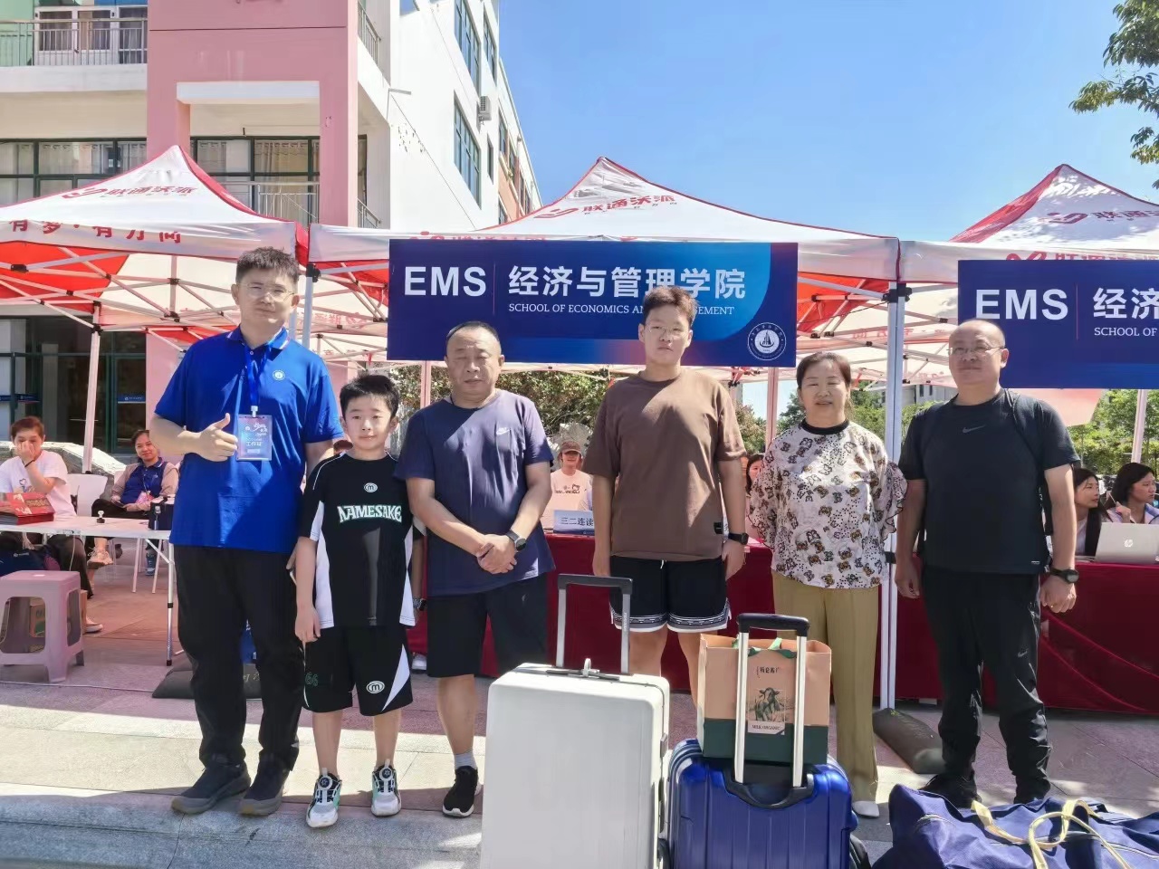 9月7日上午7点,2024级新生报道的第一天。当第一缕阳光洒向校园,经济与管理学院迎新工作人员已整装待发,在接待点以最饱满的热情迎接每一位新生的到来。