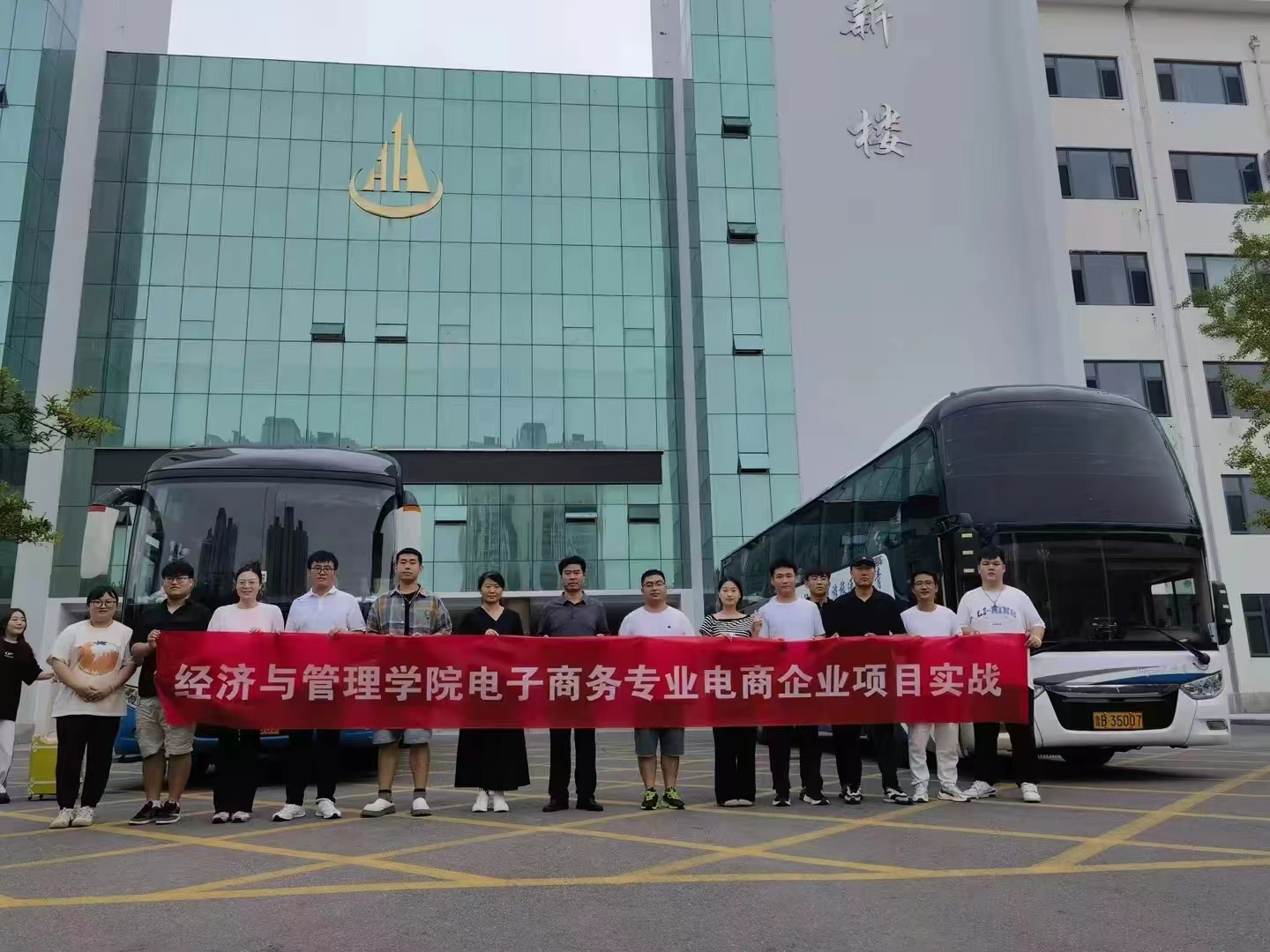 送学生的领导有国际商学院与经济管理学院常务院长 孙兆忠、经济与管理学院院长助理 李燕、经济与管理学院教学主任孙增娟、电子商务教研室主任李辰、电子商务专业老师及辅导员老师们。本次实习企业方负责人田总。电商实习是学生们从校园走向社会的桥梁。他们不仅传授了专业技能,更强调了团队合作、沟通表达等软技能的重要性,为学生们的全面发展奠定了坚实基础。这次实训不仅是对他们所学知识的检验,更是他们职业生涯的初步探索与准备。
