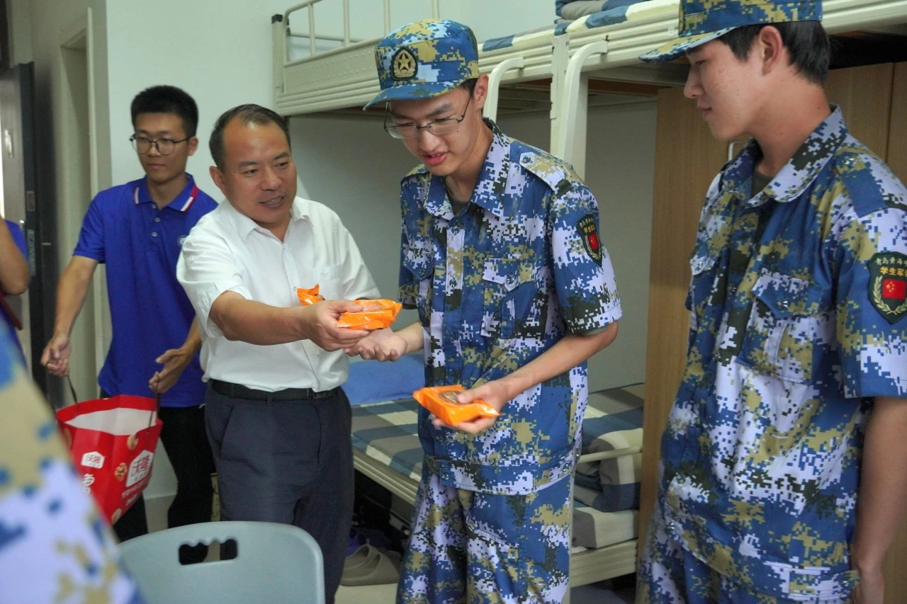 “学校食堂的饭贵不贵?"军训累不累?"“"室友相处融治吗?"近日,副校长梁忠环等校领导院新生宿舍与同学们沟通交流。在新生宿舍,校领导们亲切的询问了新同学们的生活习惯、兴趣爱好、未来规划,同时并认真倾听了新同学对大学新生活的体会以及在学习、生活等方面的意见。并鼓励他们要尽快适应新环境,珍惜大学时光,努力学习,全面发展。他强调,学院是每位学生的坚强后盾,将全力以赴为同学们提供学习、生活上的支持与帮助。