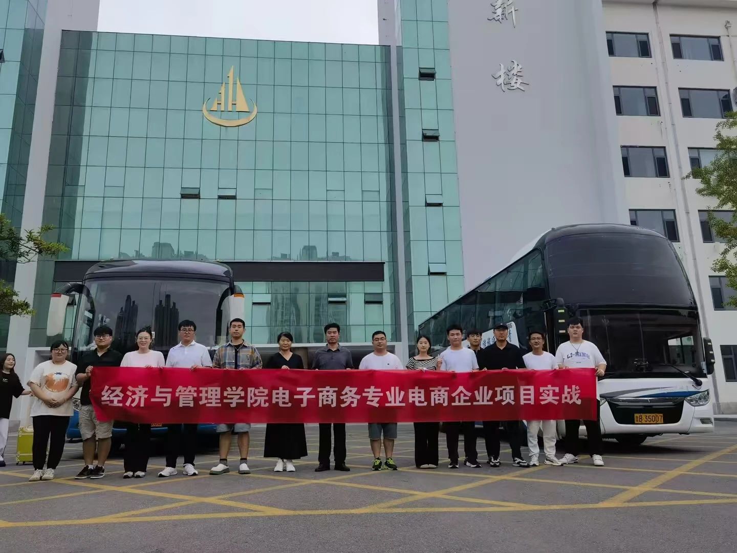 送学生的领导有国际商学院与经济管理学院常务院长 孙兆忠、经济与管理学院院长助理 李燕、经济与管理学院教学主任孙增娟、电子商务教研室主任李辰、电子商务专业老师及辅导员老师们。本次实习企业方负责人田总。电商实习是学生们从校园走向社会的桥梁。他们不仅传授了专业技能,更强调了团队合作、沟通表达等软技能的重要性,为学生们的全面发展奠定了坚实基础。这次实训不仅是对他们所学知识的检验,更是他们职业生涯的初步探索与准备。