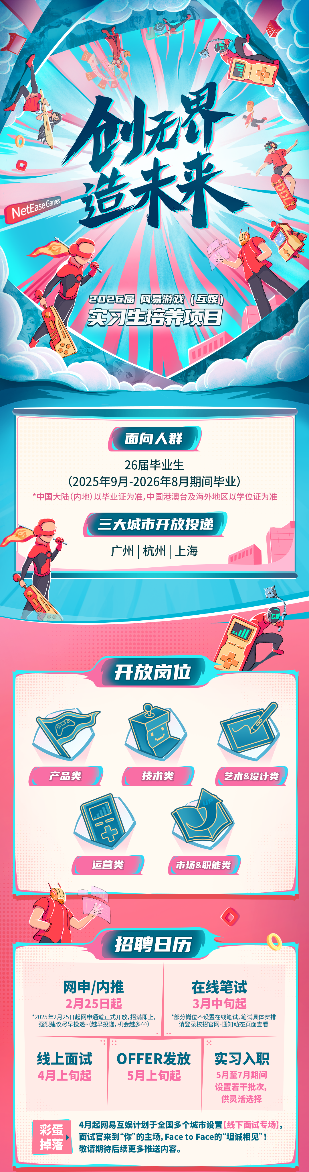 招聘信息 | 网易游戏(互娱)2026届实习生培养项目正式启动!