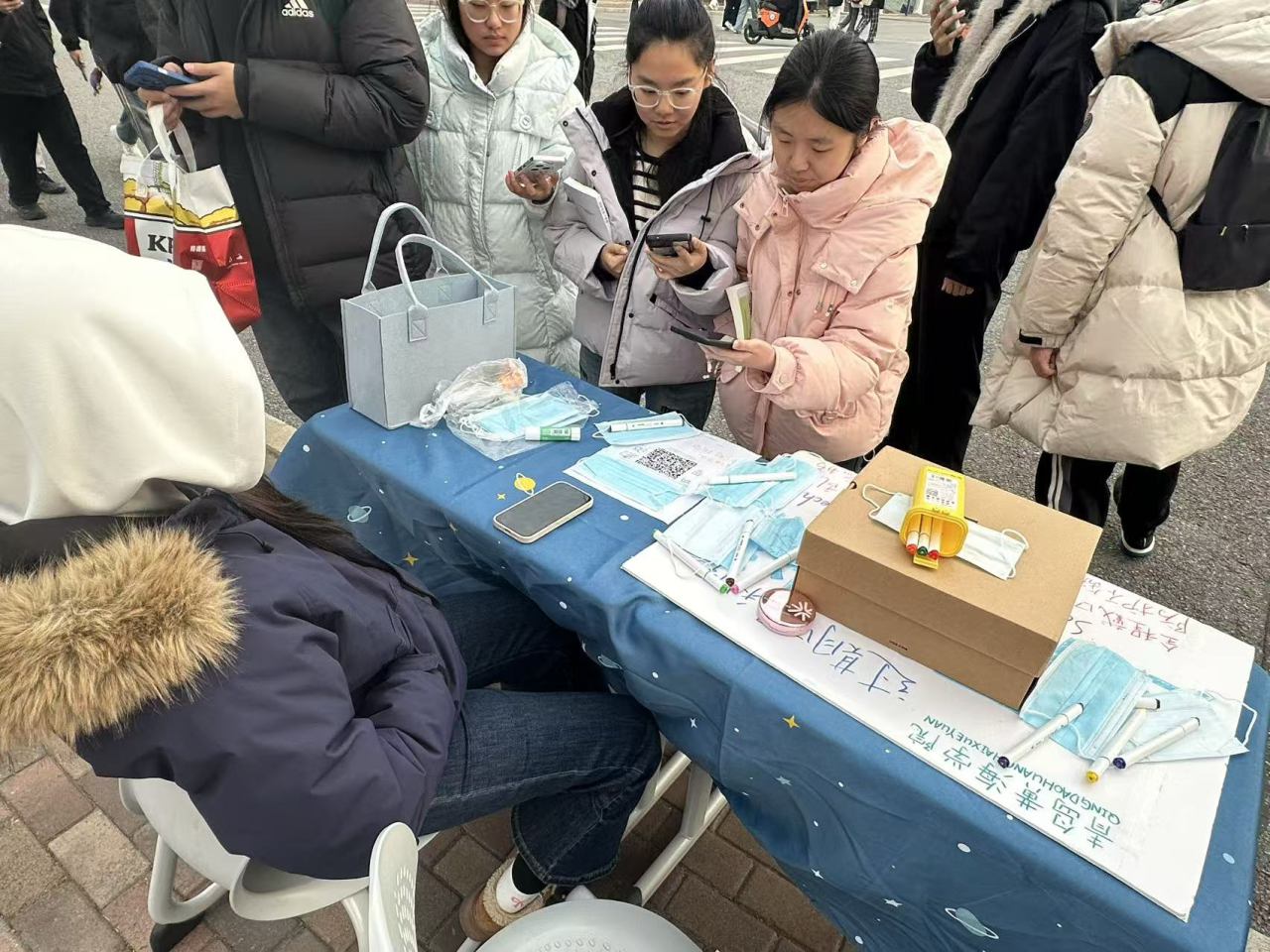 在流感高发的冬日里,总有巧思为健康护航;在书香氤氲的校园中,总有行动将防护传递。12月19日上午,北区中山像前人潮涌动,应用技术学院“流感突袭,罩住健康”线下活动在此暖心开展。在这里,一支彩笔、一只口罩,便构筑起校园防疫的温暖屏障。