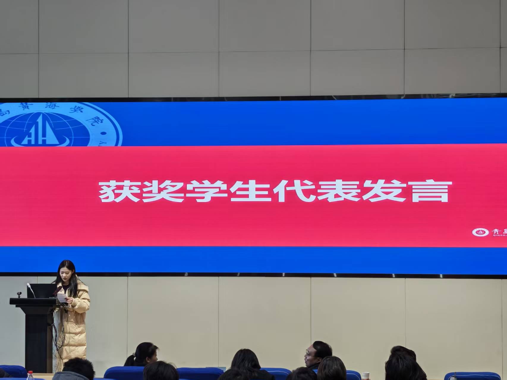 随后,激动人心的颁奖环节将大会推向高潮。在热烈的掌声中,与会领导与教师依次为获奖学生颁发了荣誉证书与奖品。本次大赛共评选出一等奖8名、二等奖16名、三等奖24名及优秀奖若干。获奖学生代表李文婧上台发言,她分享了自己备赛、参赛的心路历程与收获感悟,表达了对学院提供展示平台、老师悉心指导的感谢,并表示将继续精进技能,不负师长期望。优秀指导教师代表法元梅发言,她分享了悉心指导、共克难题的备赛历程,并勉励同学们继续发扬工匠精神,再创佳绩。