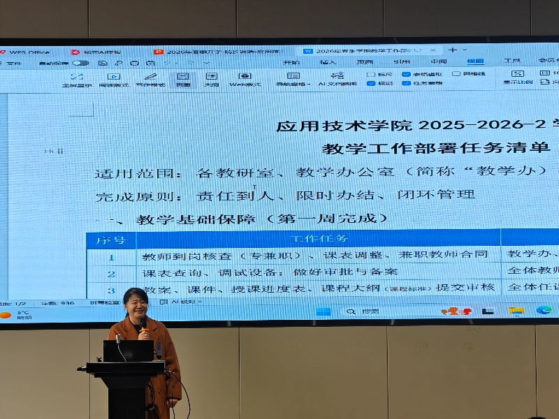 此次会议的召开,是应用技术学院立足新学期、谋划新发展的重要举措,不仅明确了2026年的工作目标、重点任务与实施路径,更凝聚了全院教职工的思想共识与奋进力量。在杨晓磊院长的带领下,应用技术学院全体教职工将以新学期为新起点,以更加昂扬的斗志、更加务实的作风、更加有力的举措,凝心聚力、真抓实干,在专业建设、产教融合、师资培养、教学改革、学生培养等方面持续发力,不断破解发展难题、厚植发展优势,奋力书写学院高质量发展的崭新篇章,为职业教育发展贡献更多力量!