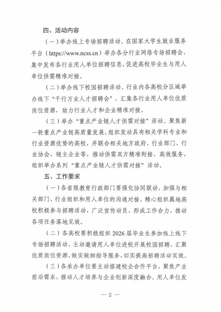 关于面向2026届高校毕业生举办分行业春季招聘活动的通知