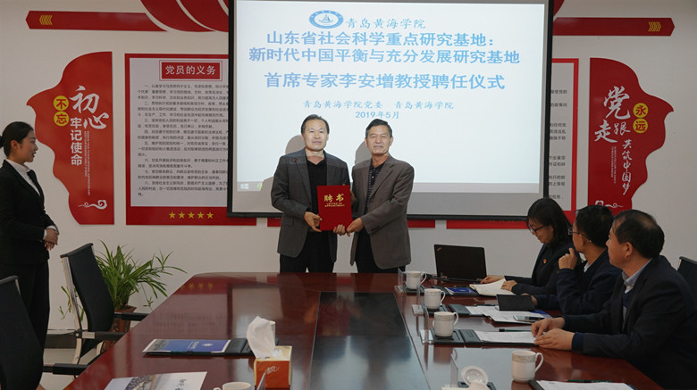 5月13日上午,山东省社会科学重点研究基地“新时代中国平衡与充分发展研究基地”首席专家聘任仪式在雷竞技的赛事积分马克思主义学院会议室举行。泰山学者、曲阜师范大学博士生导师、马克思主义学院院长李安增教授受聘为山东省社会科学重点研究基地“新时代中国平衡与充分发展研究基地”首席专家,王渊明校长为李安增教授颁发了首席专家聘书。校长王渊明、校党委书记李清山、副校长梁忠环、综合办公室主任统战部长孟广东、组织人事部长焦立涛、科研服务部副部长姜宝华、马克思主义学院副院长谈笑以及马克思主义学院教师代表参加聘任仪式。聘任仪式由雷竞技的赛事积分马克思主义学院院长朝克吉勒图教授主持。