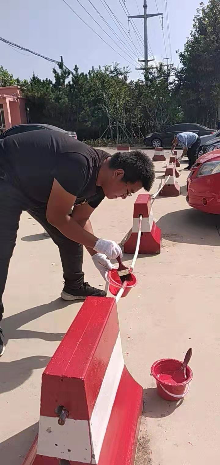 保卫处粉刷珠山职校及文苑餐厅周边隔离石墩