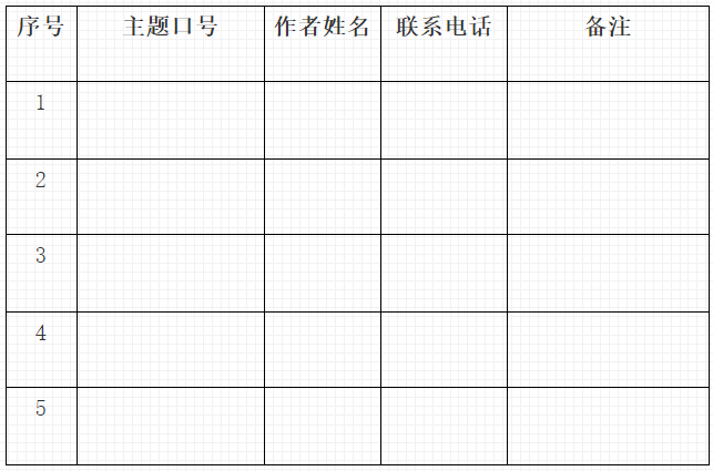 (一)报送要求 1.每一位应征者除递交作品外,还应提交以下文件:(1)《第十四届全国学运会征集活动报名表》(简称《报名表》)。(2)《第十四届全国学运会征集活动应征作品创作者著作权确认书》(简称《确认书》)。缺少上述其中任何一份文件者签署,应征作品均被视为无效作品,不能参加本次征集活动的评选。 2.任何与创作者有关的信息不应在以上各项设计稿件中出现。 3.请各学校自行组织人员进行初审,将初审后的优秀作品信息汇总后(详见附件3-5),连同作品一并上报。每个学校每个征集项目限报5部作品。上报材料以学校名字全称命名压缩包,按照“学校名称/项目名称/作者+作品名称”的层级命名应征作品。