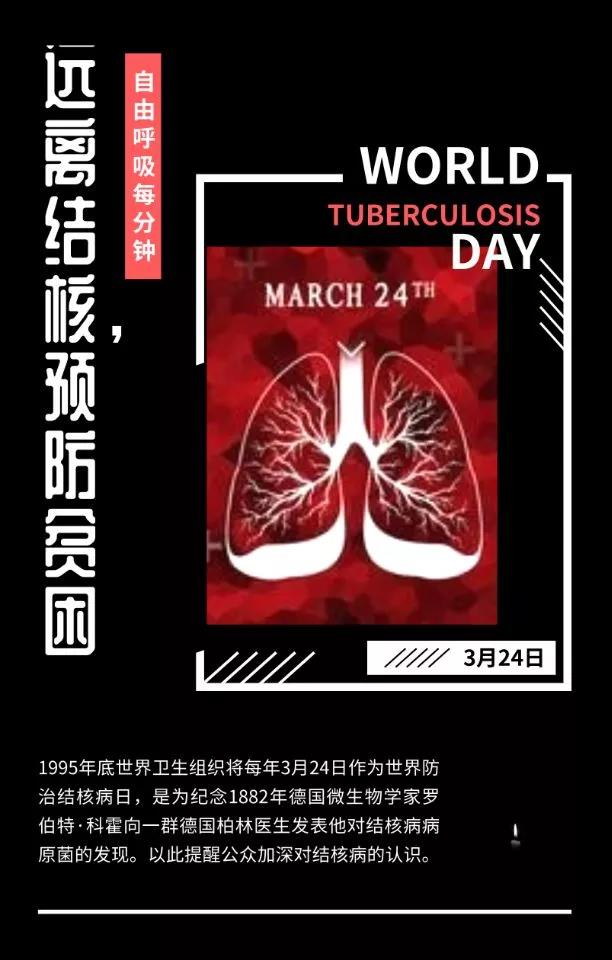 目前,我国的结核病疫情虽然仍存在患病率高,死亡率高,疫情下降缓慢等特点,但只要社会各界都关心、支持和参与结核病防治工作,增强全民防治结核病意识,使全社会人人都了解结核病的危害性和防治结核病的重要性,熟悉结核病的防治知识,做到早防、早治,使结核病结核远离我 健康你我他!!!