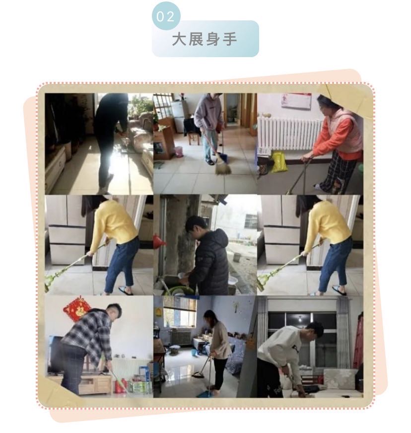 现在宅在家的我们有大把时间帮妈妈刷刷筷子洗洗碗、给爸爸捶捶后背揉揉肩,抹桌扫地洗衣,争做贴心棉袄、家务能手。