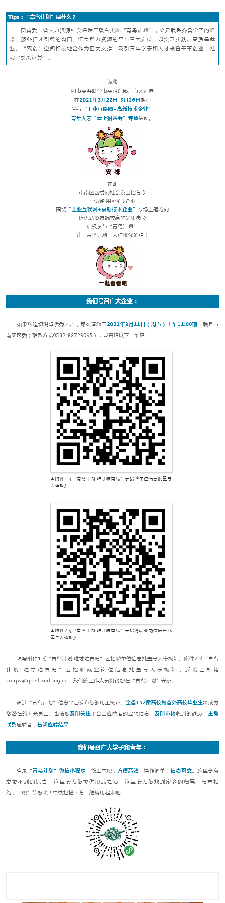青鸟计划 | 招募令!“青鸟计划·唯才唯青岛”青年人才专场招聘会等你来参与!