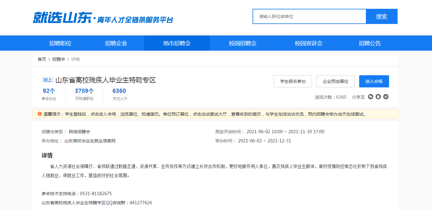 山东省高校残疾人毕业生特聘专区