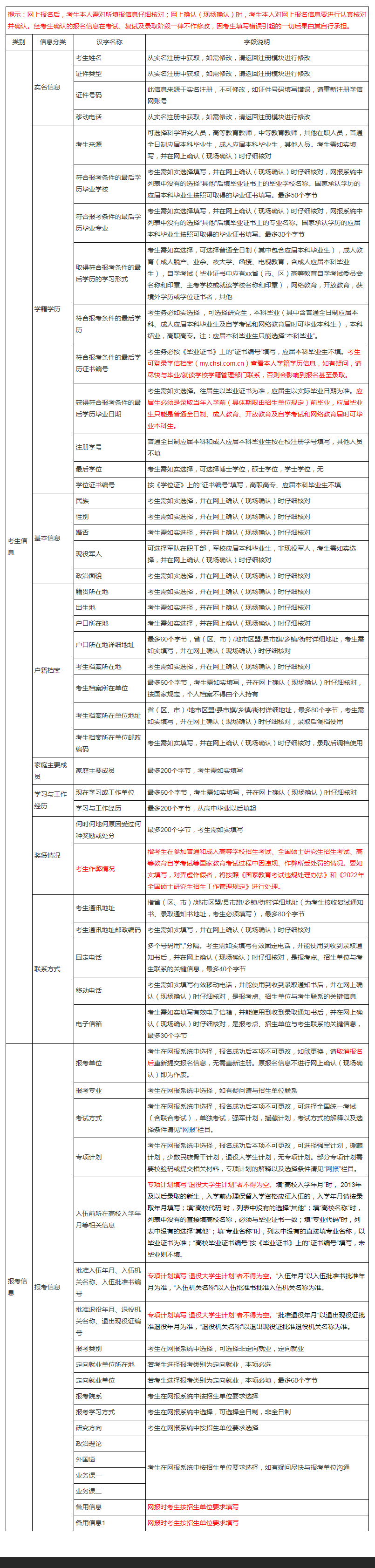 2022年研究生考试统考考生需准备的网报信息