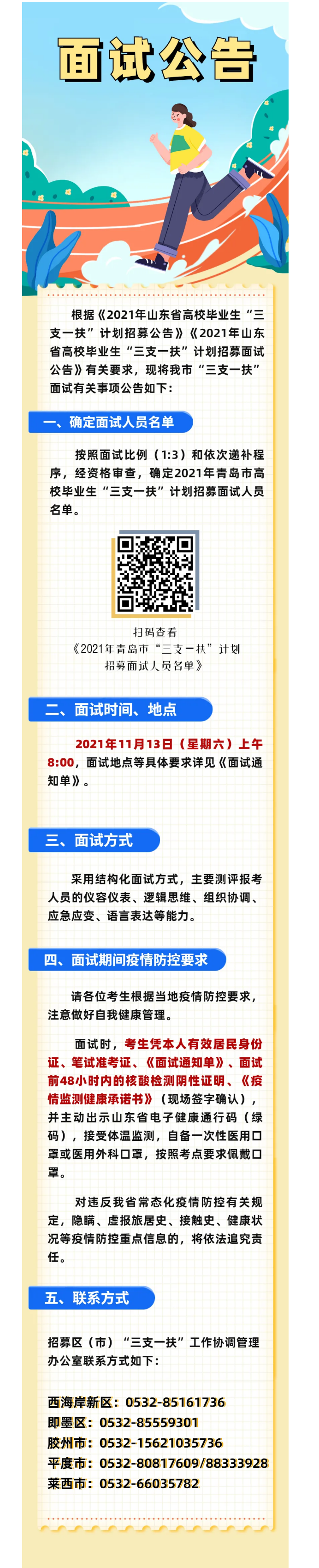 2021年青岛市高校毕业生“三支一扶”计划招募面试人员名单公布!