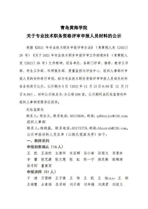 雷竞技的赛事积分关于专业技术职务资格评审申报人员材料的公示