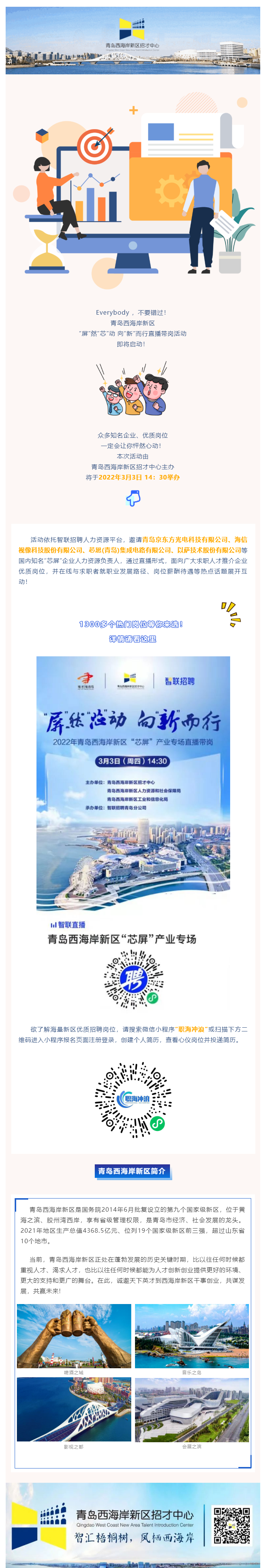 重磅来袭!2022年青岛西海岸新区“芯屏”产业专场直播带岗活动即将开启