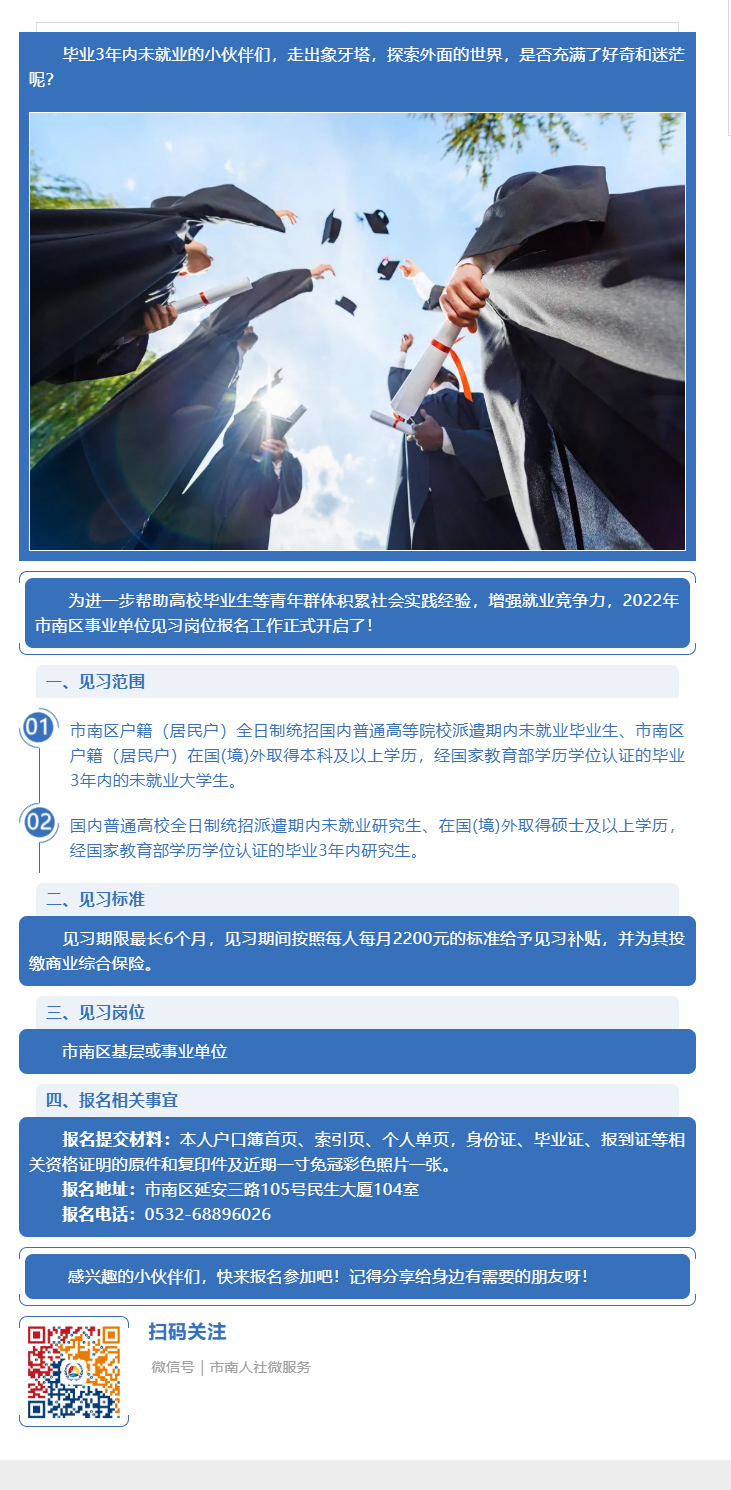 机会来啦!2022年市南区事业单位见习报名开启了!(