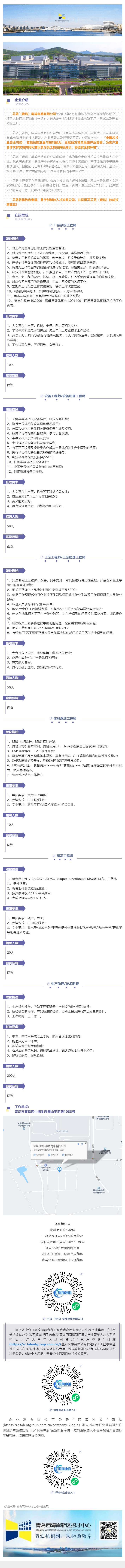 人才招聘 || 芯恩(青岛)集成电路有限公司