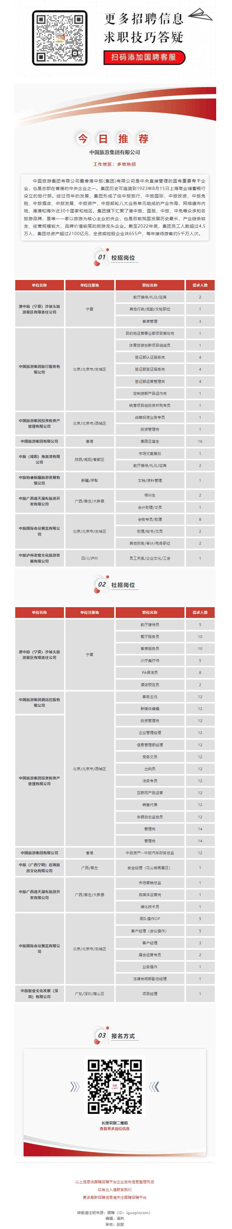 中国旅游集团有限公司岗位推荐来了!多岗位多专业【内附岗位名单】