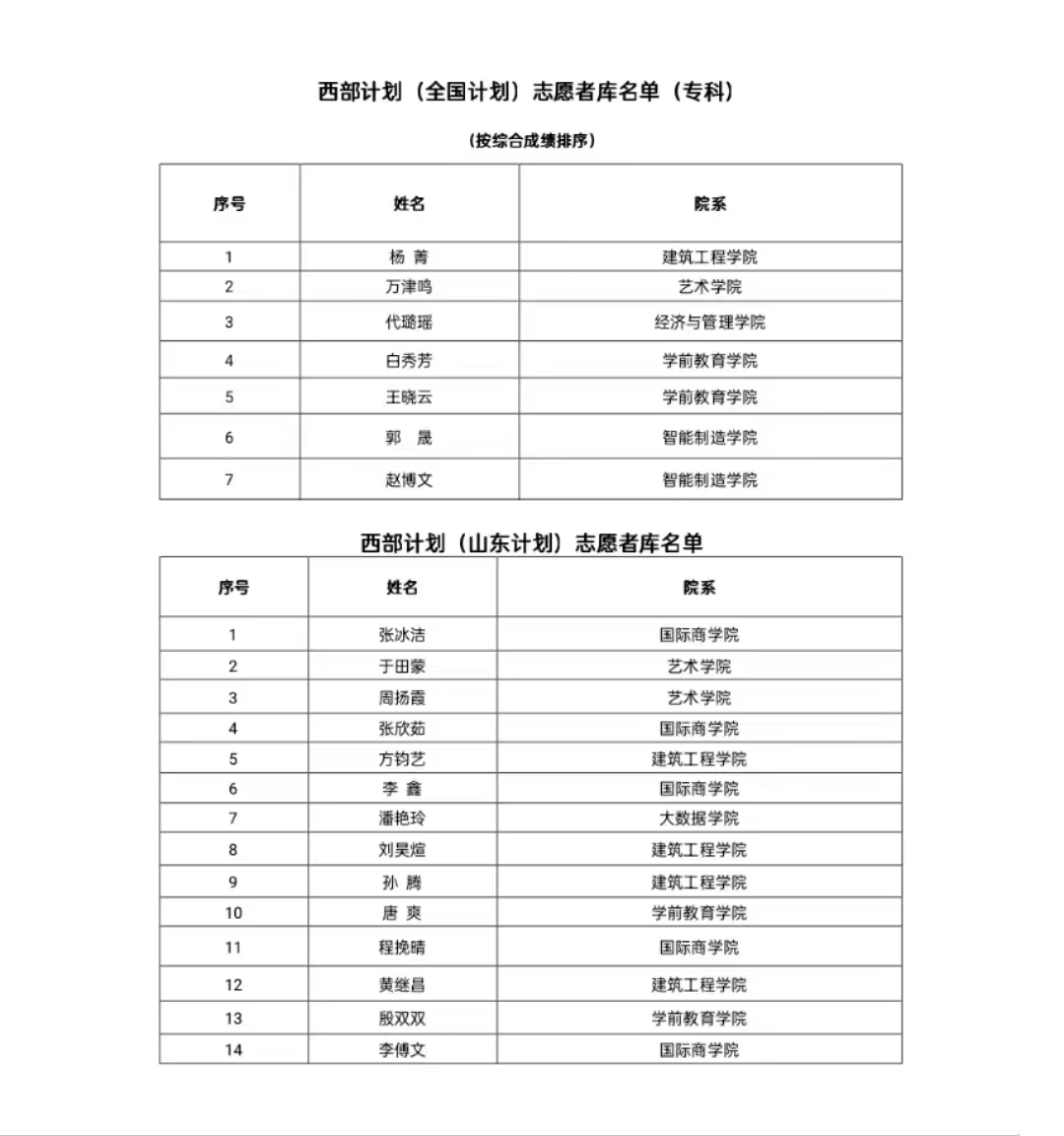 为深入学习贯彻习近平新时代中国特色社会主义思想,进一步引导和鼓励高校毕业生到基层工作、到乡村工作,助力打造乡村振兴“齐鲁样板”,根据省项目办工作要求,学校团委开展2022—2023学年第二学期大学生志愿服务西部计划推选工作。
